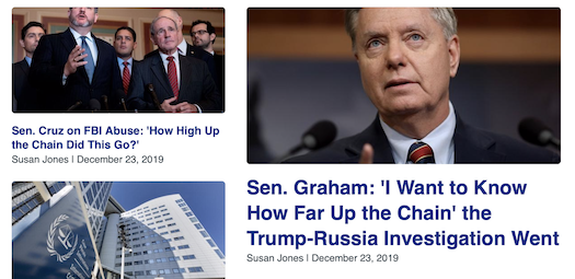 Susan Jones wrote in a Dec. 23 article headlined “Sen. Graham: ‘I Want to Know How Far Up the Chain’ the Trump-Russia Investigation Went“:
