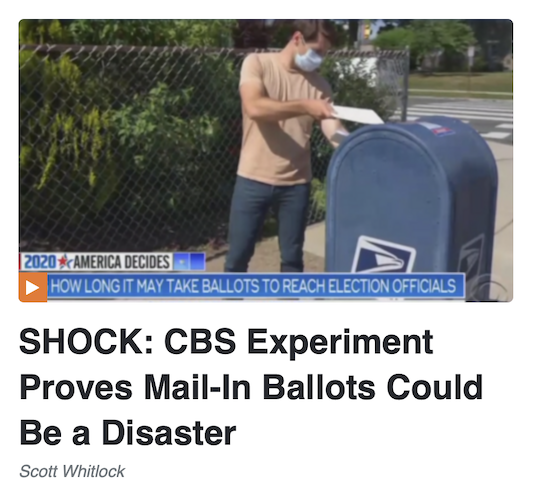 - It’s more than a little strange to call criticism of mail-in voting “unsubstantiated” just days after CBS conducted its own mail-in voting experiment, and found it lacking! — Tim Graham, Aug. 1