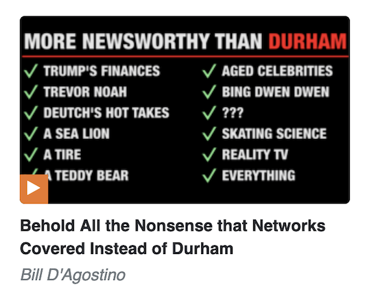 A Feb. 21 post by Scott Whitlock whined that non-right-wing outlets wouldn’t cover the Durham story like Fox News did: