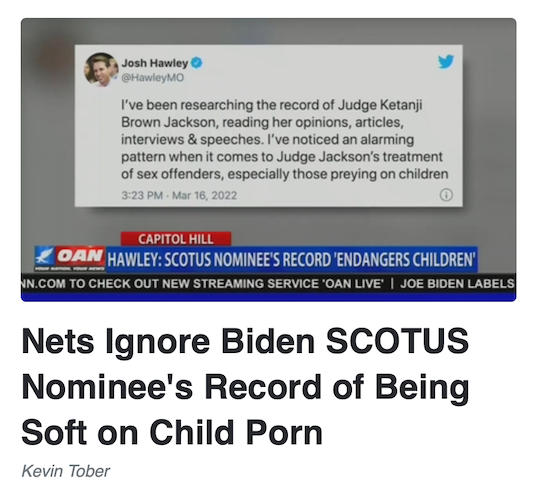 Tober lashed out at one commentator who claimed Hawley’s attack on Jackson could get her killed, insisting that Hawley was just “attempting to hold a Supreme Court nominee accountable for her record on the bench.” He didn’t mention that Hawley’s accusations had already been discredited — narratives are more important than facts, after all.