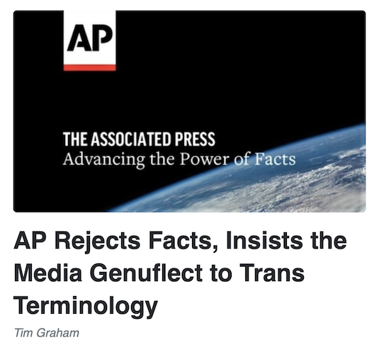 The gender “assigned at birth” is merely a social construct that can “turn out to be inaccurate.” Remember that AP sells itself to the public as “Advancing the Power of Facts.” When they consult “Experts,” then “Facts” go out the window. In 2017, the AP Stylebook commissars embraced “they” as a singular, gender-neutral pronoun.