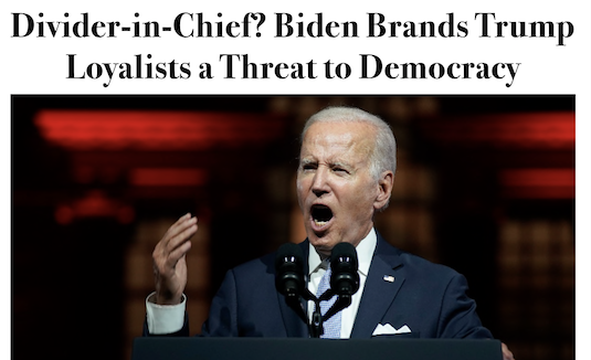 President Joe Biden pointed his finger in the wrong direction during last night’s prime-time speech when he purported to describe an “ongoing attack on democracy.”