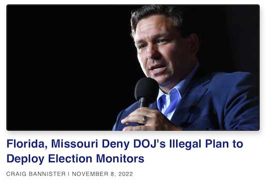 Florida and Missouri have told the U.S. Justice Department that they will not allow the DOJ to violate their state laws by going through with its plan to deploy election monitors to their states.