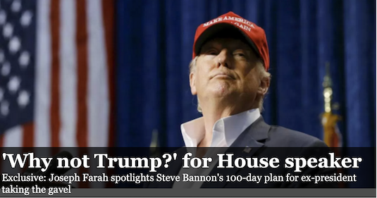 Last month’s Republican infighting over picking a new House speaker, though, gave Farah a glimmer of hope, when Trump’s name was put into nomination during one round of voting. Bob Unruh sycophantically wrote in a Jan. 5 article:
