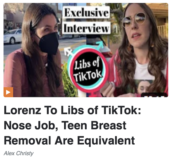 As someone who writes for the paper that claims democracy dies in darkness, Lorenz should know that truth, for its own sake, matters. No matter how many times Lorenz claims that chopping off a young girl’s breasts is the same as a nose job is the same thing, it will never be true.