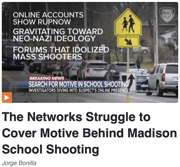 At this stage, the motive of the Madison school shooter seems pretty clear, but the network news seems hesitant to report what it is. Of course, this generally means that the motive is inconvenient to prevailing leftwing narratives or identity politics. This case is not the exception.