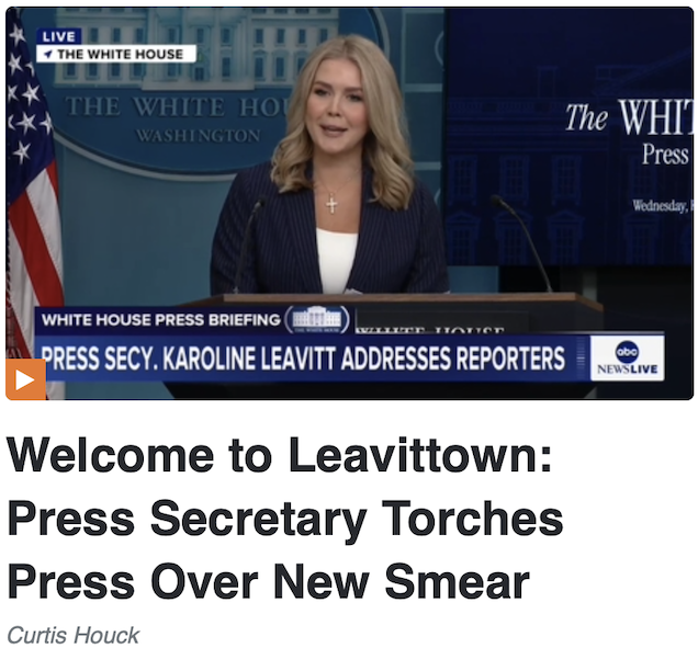 In his review of the Feb. 12 briefing, Houck cheered Leavitt’s tirade against journalists who refused to be good little Trump-bots like she demanded: