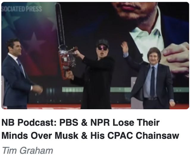 Tim Graham groused about Musk’s chainsaw-laden performance at a right-wing convention being criticized in his Feb. 21 podcast: