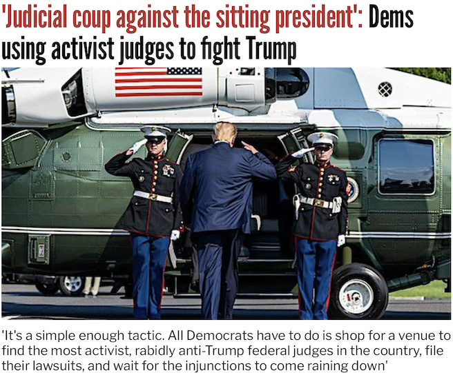 - ‘Judicial coup against the sitting president’: Dems using activist judges to fight Trump
