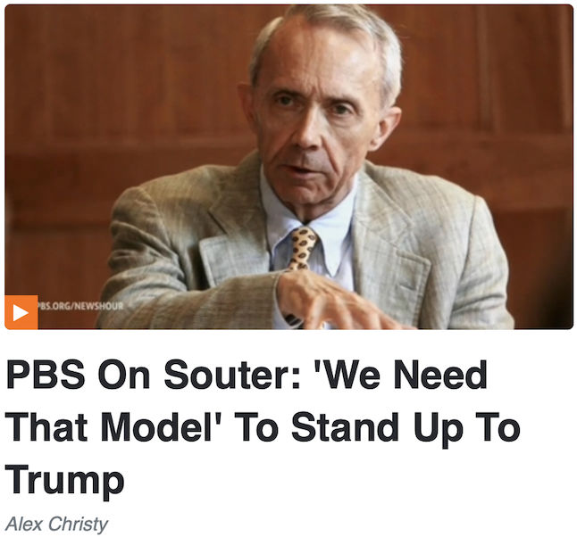 Not even the death of a former Supreme Court justice can stop PBS News Hour from freaking out about President Donald Trump setting up some sort of dictatorship. On Friday, former Trump impeachment witness and David Souter law clerk Noah Feldman joined the show to remember his former boss and while he never explicitly mentioned Trump, it was clear who he was referring to when he declared of Souter’s legacy, “in the current moment, when the threat to the rule of law is unprecedented, we need that model.”
