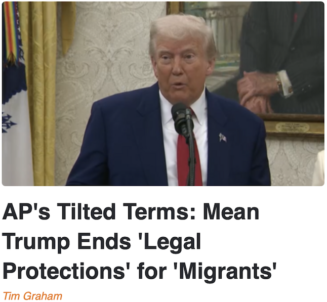AP also repeatedly called it “humanitarian parole,” suggesting Trump opposes humanitarian policies — with no imagination that not every illegal immigrant is a humanitarian: