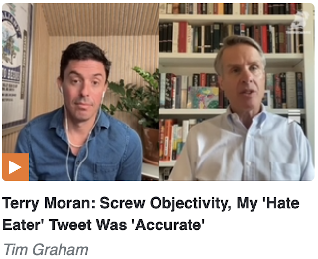 Terry Moran granted his first interview after being dismissed by ABC News to The Bulwark Podcast with Tim Miller, which is like going to MSNBC to vent your anti-Trump feelings. Unsurprisingly, Moran doubled down on his Twitter tirade over Trump and his top adviser Stephen Miller being “world-class haters,” and Miller “eats his hate” and finds “spiritual nourishment” from his hate. Moran insisted this wasn’t a “drunk tweet,” but that it was The Truth.