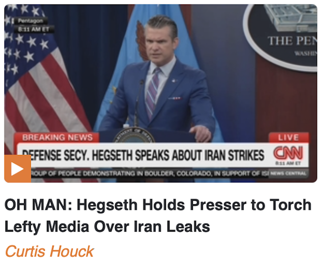 Regarding the sources who spoke to Deep State tool Natasha Bertrrand, Hegseth said whomever did this was “irresponsible” and “had an agenda to try to muddy the waters” with “a linchpin assumption” that was of low confidence from the Defense Intelligence Agency. As for the press, Hegseth excoriated them for “cheer[ing] against Trump so hard” as though it’s “in your DNA and in your blood.”