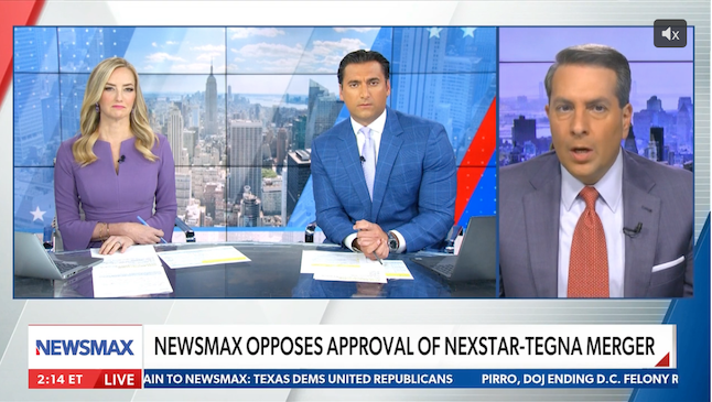 Newsmax then teed up a favored analyst to oppose the merger in an Aug. 20 TV appearance: