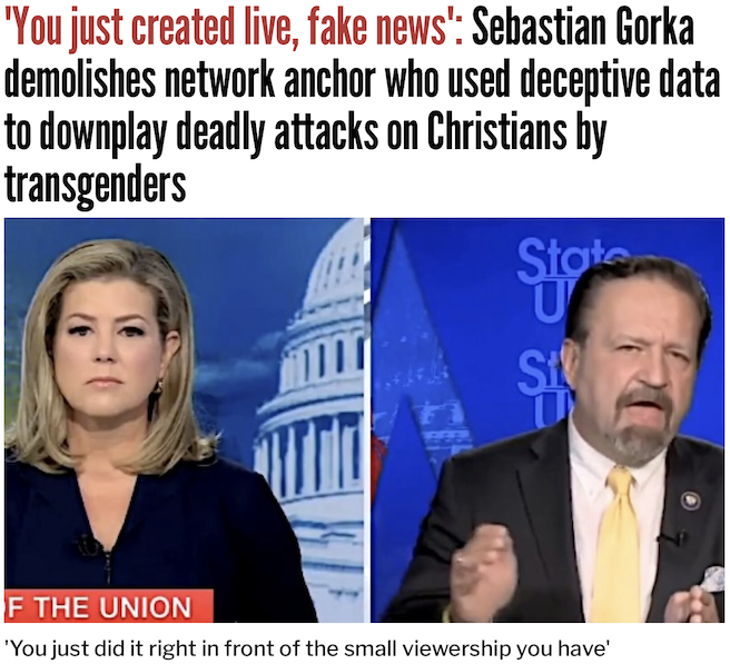 A top White House official went to war with CNN on Sunday as a network anchor used deceptive data to downplay deadly attacks against Christians by transgenders.
