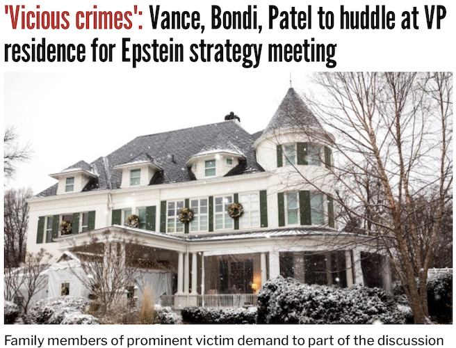 Meanwhile, appearing on “Sunday Morning Futures” with Maria Bartiromo on the Fox News Channel, Vice President JD Vance said of the Epstein case: “I laugh at the Democrats who are now all of a sudden so interested in the Epstein files. For four years Joe Biden and the Democrats did absolutely nothing about this story.”