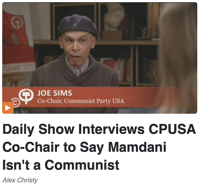 Comedy Central’s The Daily Show is so desperate to prove that New York mayoral candidate Zohran Mamdani is not a communist that it sent Desi Lydic to interview Communist Party USA co-chair Joe Sims to insist that Mamdani is not, in fact, one of them. Of course, Sims had to propagandize as well as he lamented his movement’s “bad reputation” and that communism is actually all about freedom to do what you wish, which might have been the funniest moment on the comedy shows all year.