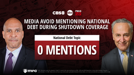 MRC Business researchers analyzed Nexis transcripts between the start of the shutdown on October 1 to October 10, and found that none of the ABC, CBS, or PBS broadcasts even bothered to mention the national “debt” during that time period. (NBC transcripts weren’t available.)