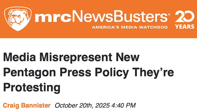 But you know who loved the new guidelines? The Media Research Center. An Oct. 20 propaganda article by Craig Bannister under the sullied-beyond-recognition CNSNews.com banner insisted that the new policy is “being mischaracterized by the media”: