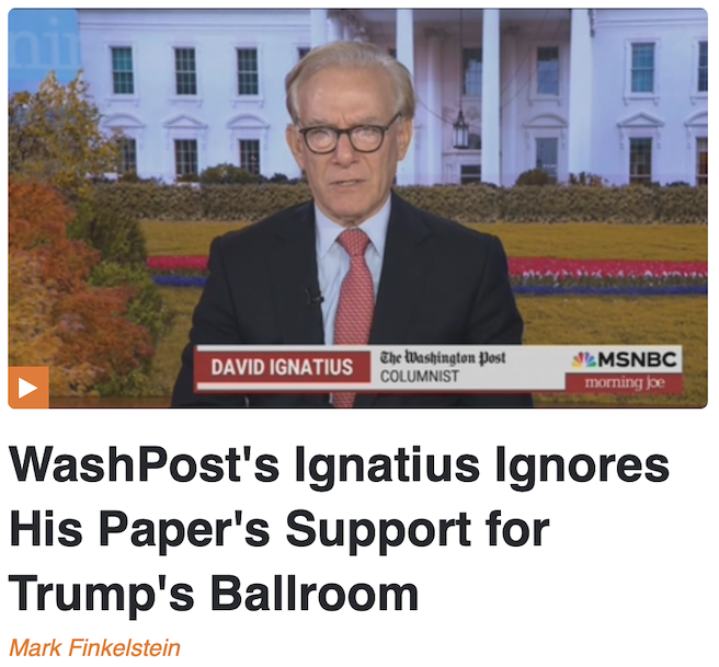 […]What Ignatius didn’t disclose was that over the weekend, the paper’s Editorial Board had published an editorial entitled, “In defense of the White House ballroom–Donald Trump vs. the NIMBYs.”