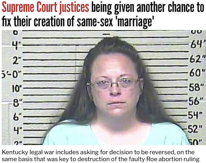 A legal fight in Kentucky that erupted when same-sex marriage activists demanded a Christian clerk violate state law and grant them a “marriage” license just hours after the Supreme Court created that status in America, now has returned to the Supreme Court.