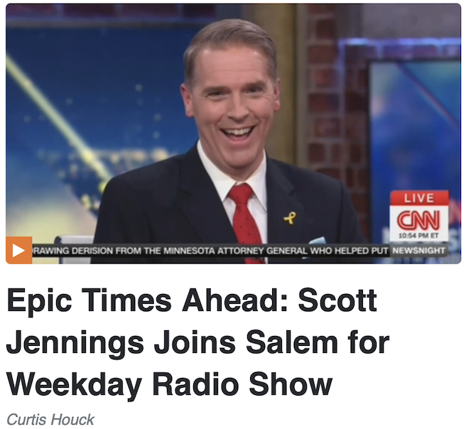 On Wednesday morning, our friends at Salem Media announced that CNN senior political commentator Scott Jennings — a 2025 MRC Bulldog Award winner, daily viral sensation, and conservative star — will be joining their radio side starting on July 14 for a weekday talk show at 2:00 p.m. Eastern.