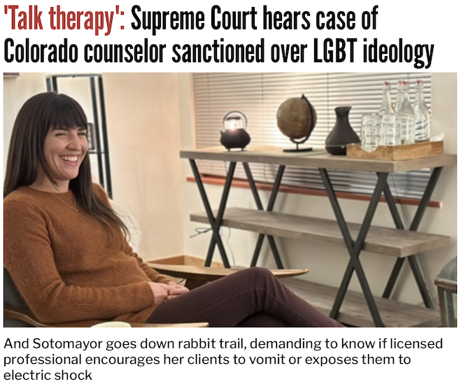 Colorado Solicitor General Shannon Stevenson claimed studies confirm higher rates of suicidality among teens who underwent conversion therapy – but Chiles’ lawyer explained those results depend on biased sampling, self-reporting, which is unreliable, and the inappropriate conflation of “aversion therapy,” a separate concept entirely, with the misnamed “conversion therapy.”