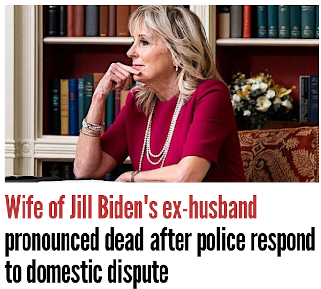 The wife of Jill Biden’s ex-husband, whom the former first lady married in 1970 and divorced in 1974, has been pronounced dead after a police team responded to an alleged call about a domestic dispute, according to a terse report posted by TMZ.