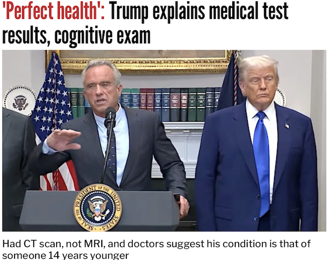 President Donald Trump whose health at age 79 is a constant talking point for Democrats after they essentially ignored the years-long physical and mental decline of Joe Biden before he turned in a catastrophic debate performance against Trump and dropped out of the 2024 presidential race, has been used as ammunition by Democrats.