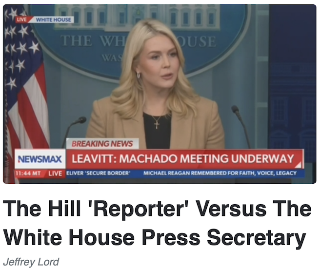 Jeffrey Lord spent his Jan. 17 column whining that a certain reporter wasn’t respectful enough in asking about Good’s death, prompting White House press secretary Karoline Leavitt to viciously attack him as a “left-wing hack”: