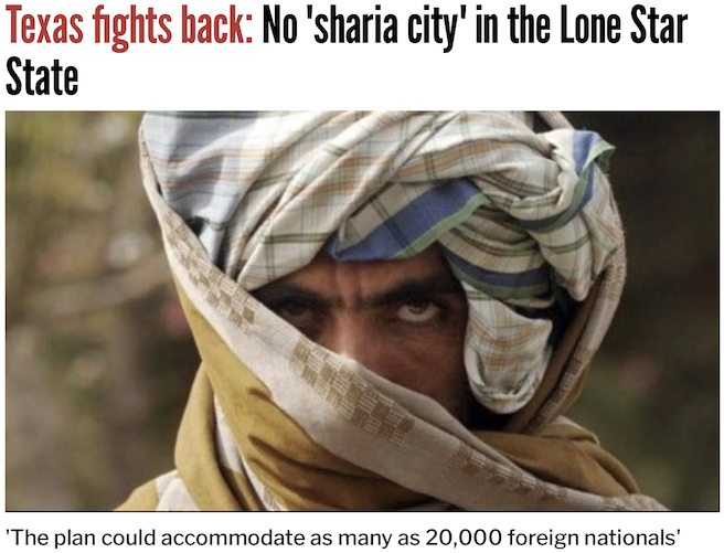 The attorney general left no room for ambiguity in his statement: “There will be no ‘sharia city’ in Texas under my watch.”