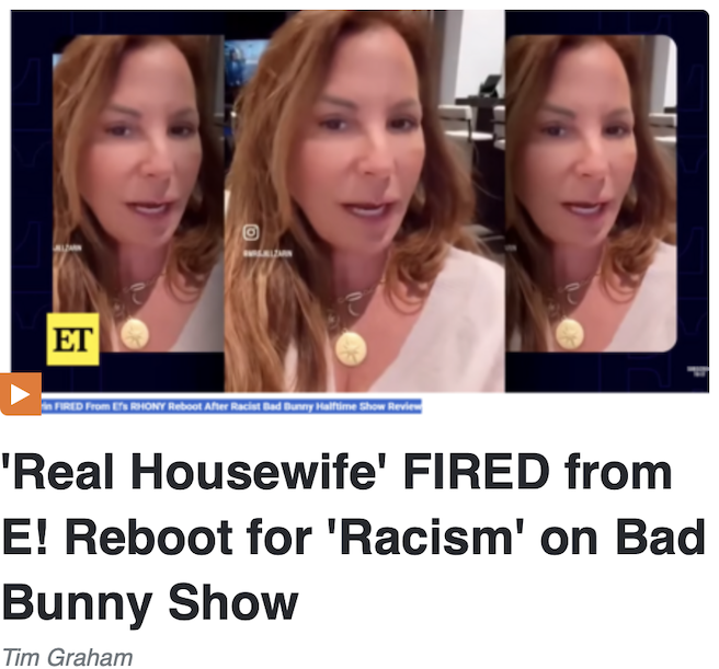 The next day, Tim Graham groused that the “Real Housewife” who trashed Bad Bunny got fired: