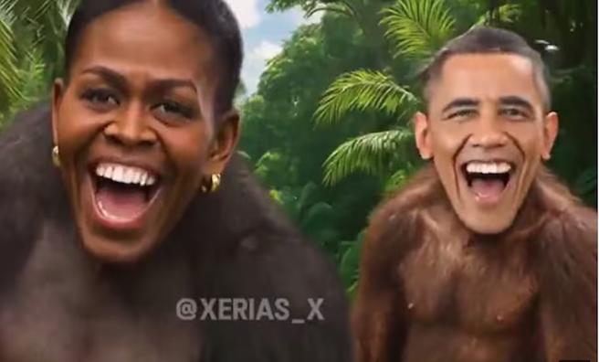 But near the end of the clip, an apparent AI-generated image briefly appeared showing the faces of Barack and Michelle Obama superimposed onto monkeys.