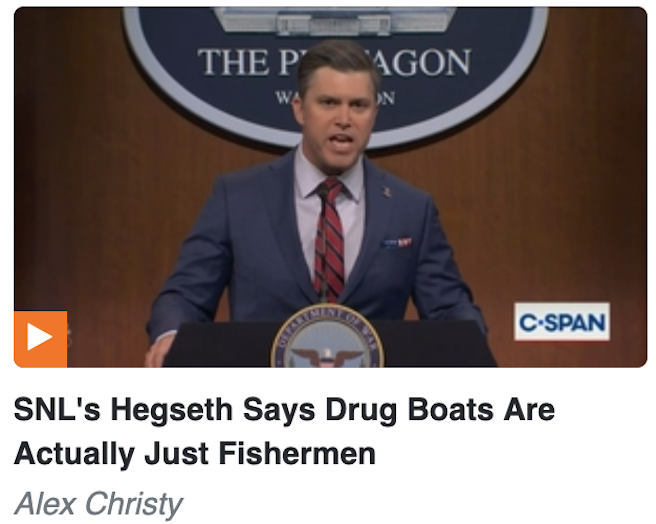 Calling yourself a comedian does not give you the license to spread fake news under the guise of exaggeration or hyperbole, but once again NBC’s Saturday Night Live has done just that. This time the guilty party was Colin Jost, who played Pentagon Chief Pete Hegseth and claimed that the drug boats being hit in the Caribbean are actually just fishermen and that the name of the operation is Operation Kill Everybody.
